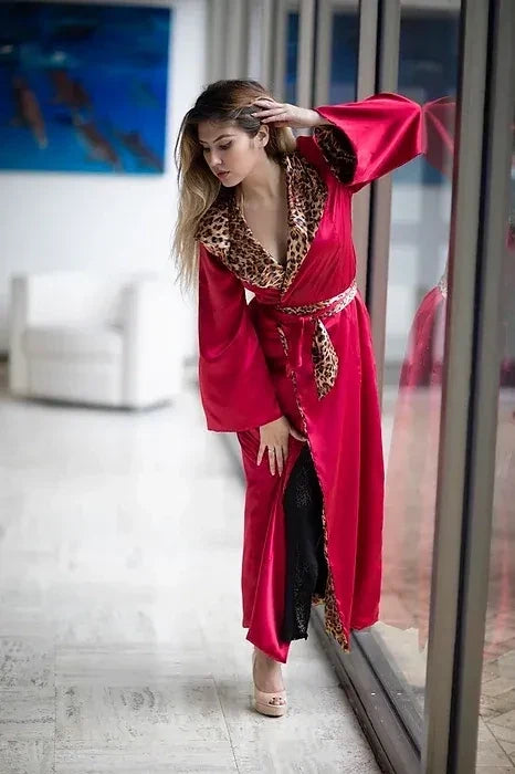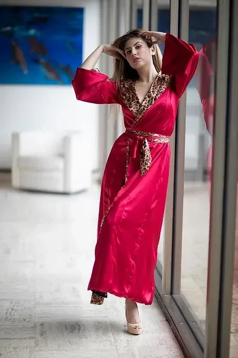 The Lux Leopard is one of our most luxurious & versatile pieces. Can be worn as a duster over your favorite outfit, a resort cover-up, or as a traditional robe. The fully reversible design allows you to choose between a bold red side or a fierce leopard print. Vanessa is wearing it over our Wild One Bikini for a poolside look that will leave everyone breathless.