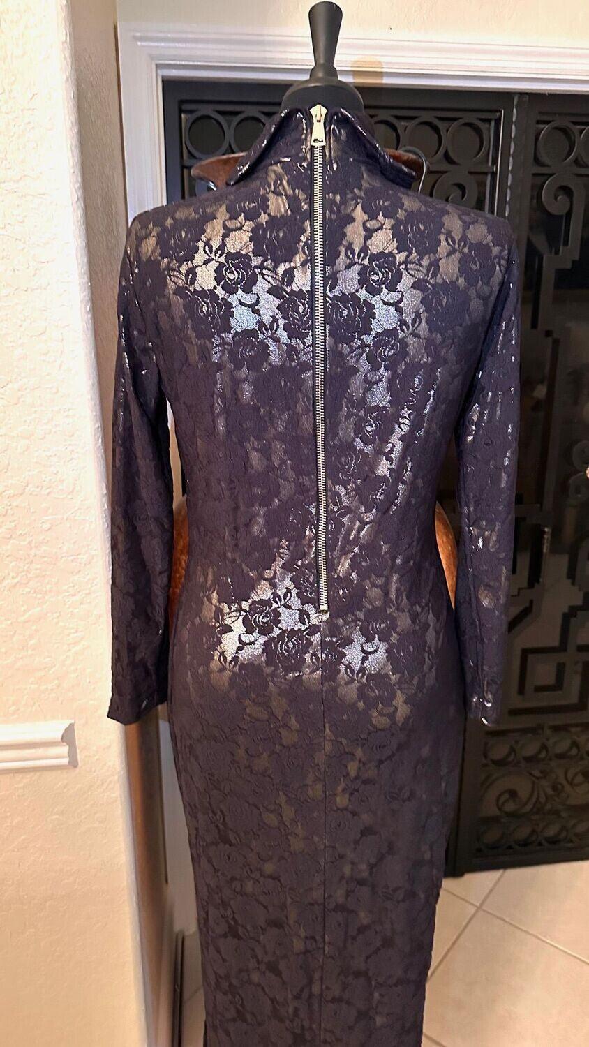 The Grace Gown is Crafted with Care and designed to elevate your evening style. Lace detailing at its best, a high collar creates an alluring, sexy neckline on our long-sleeve stretch black lace over gold soft as butter fabric. Back zip closure for easy in and out access. This combination of lace and gold fabric adds an air of elegance. Whether you're heading to a special event, or just want to add a touch of sophistication to your evening wardrobe, this gown has got you covered. This evening dress is a must have for any Fashion Forward individual.