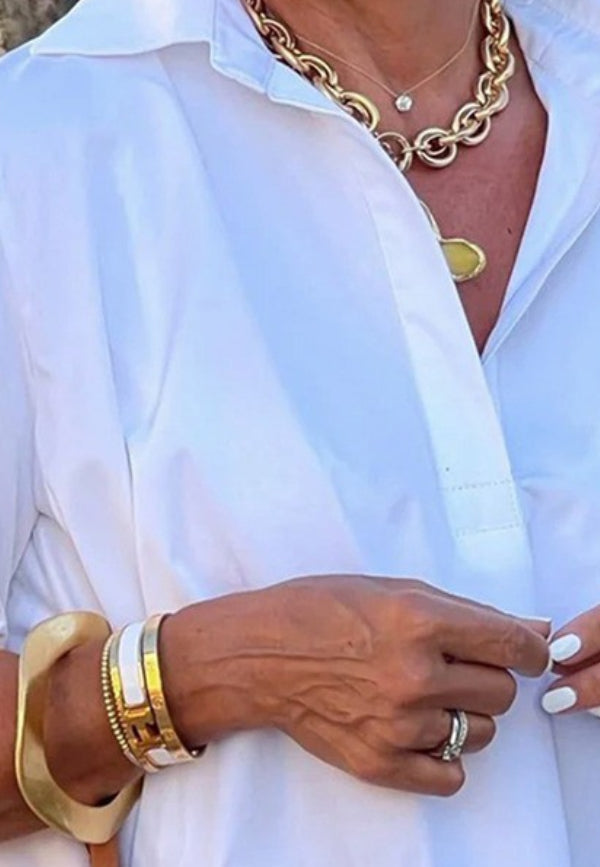 It doesn’t get more classic than this. A timeless dress that will be a staple in your wardrobe. We love the light and airy feel, the crisp white fabric, and the perfect collar. Your essential shirt dress, but elevated!