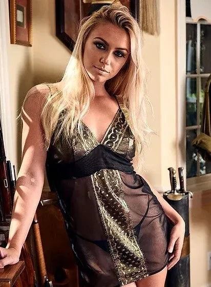 The Addicted Sheer Chemise is an epitome of elegance and royalty, crafted from luxurious stretch soft tulle adorned with exquisite French Gold Leavers lace. This sheer chemise is designed to make you feel regal, with its delicate lace detailing and a charming bow perfectly placed for added allure. The gold stretch straps add a touch of sophistication and ensure a comfortable fit. Slip into this stunning piece, and you might find yourself saying "oui... oui" with every step.
