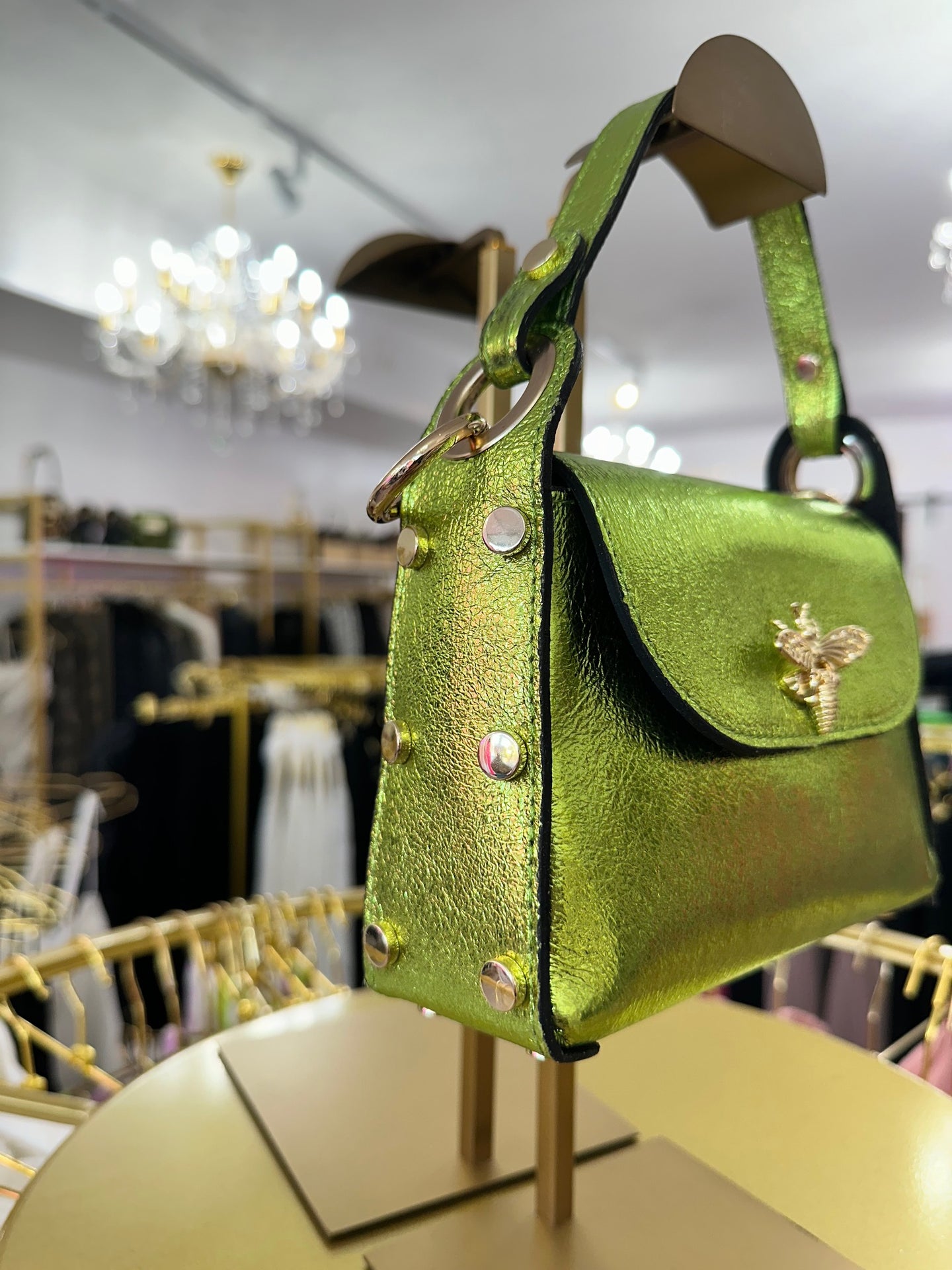 Our Newest Little Hand Bag, All Leather Made in Italy- Includes Chain For Cross Body Wear